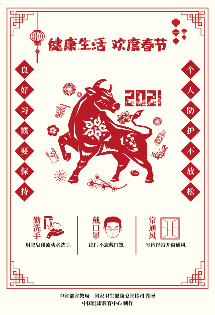 健康生活 欢度春节疫情防控海报(剪纸)1