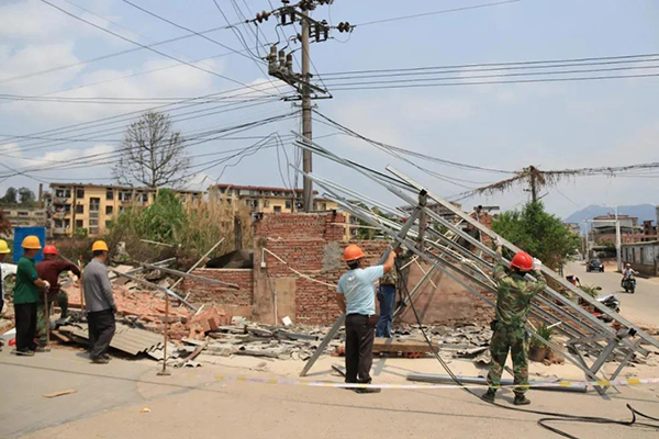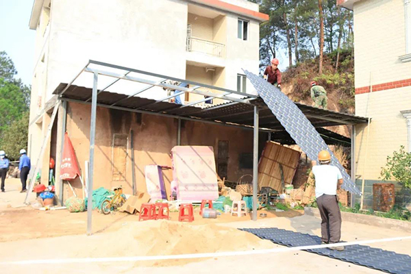 现场6:经查,城厢镇南通村刘某户未经审批,擅自在房前路旁(位于三叉路口视线盲区,安全隐患大)搭建钢棚并封砖,占地面积约20㎡。工作人员依法发放限期整改通知书,责令其限期自行拆除。但违建户在限期内未拆除整改,本次行动予以强制拆除。