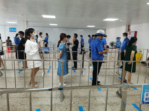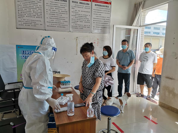 8月9日上午9点,记者来到县医院南门院外采集点看到,前来做核酸检测的市民正有序排队,医护人员娴熟地对每一位前来采样的人员进行测量体温、三码联查、采集核酸样本。