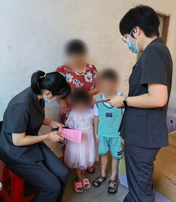 日前,武平县法院家事审判团队的干警们来到涉家事案件致困儿童家中,了解儿童的生活、学习、娱乐等情况,关注儿童情绪状况和思想动态,提供家庭教育指导和回访帮扶。