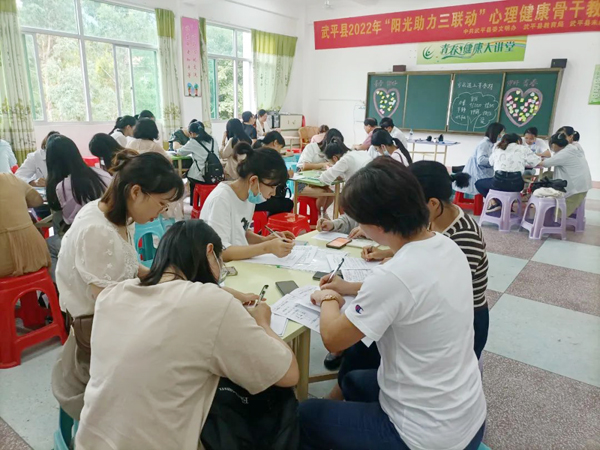 为推进武平县未成年人心理健康教育工作扎实开展,积极推动“家庭学校社会”三位一体的心理健康服务体系建设,进一步提升武平县未成年人心理健康教育水平,9月7日,县委文明办、县教育局联合举办“阳光助力三联动”心理健康骨干教师培训班,全县70余名心理健康骨干教师参加培训。