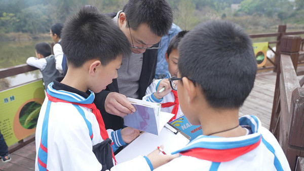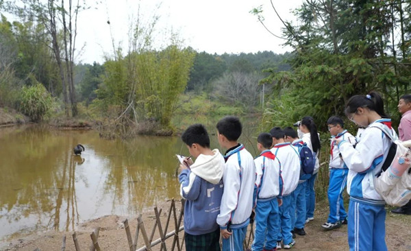 学生刘柯尧高兴说,“那个小鸊鹈,还有斑嘴鸭、绿翅鸭,这些鸟的花纹都五颜六色,很漂亮。我们要保护好我们的大自然。”