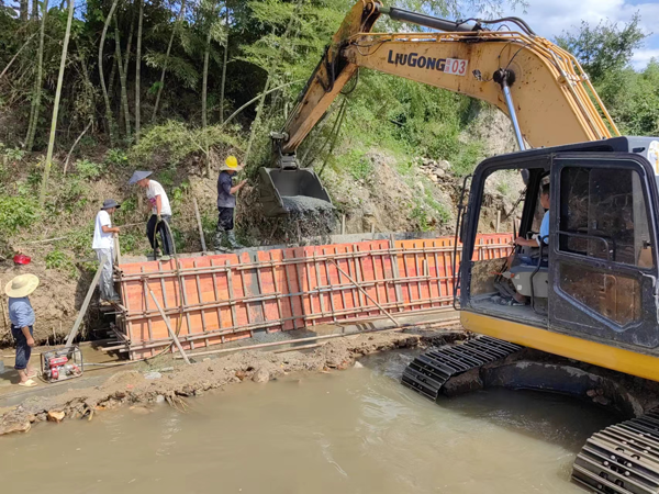 8月11日,在武平县东留镇新福溪山洪沟治理工程施工现场,挖掘机挥舞着巨臂,工人们忙着土石方的开挖和护岸护坡施工,现场一派热火朝天。