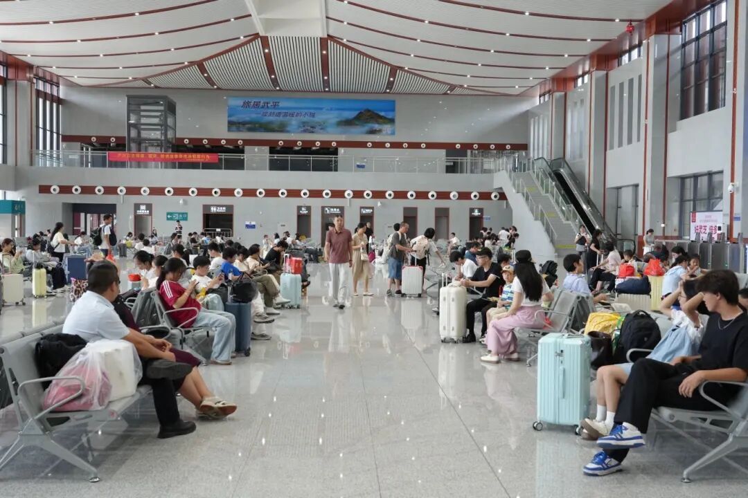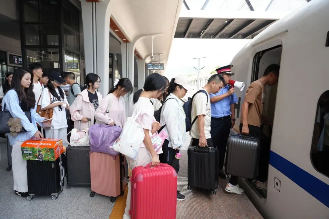 10月7日,国庆中秋假期第七天,不少旅游、学生、探亲人流陆续返程,龙龙高铁武平站迎来返程客流高峰。当天下午2点左右,记者在武平站候车大厅看到,整体秩序井然。安检口前,旅客按照指引快速通过检查;检票口旁,大家有序排队等候上车。 旅客林呈义开心地说:“我回家已经五六天了,现在过完节准备回福州去上学,从武平就能坐上高铁,特别方便。上个月我妈妈给我寄了四箱黄金百香果,室友们都说很好吃,所以这次我又带了一大袋子,和同学们一起分享我们武平的美味。” “我们是从河南焦作过来参加我妹妹孩子的婚礼,坐高铁很方便。婚礼在百家大院举行,这里建筑、环境都挺好,是比较传统的中国文化,木质雕刻也很好。”旅客曹女士高兴地说道。 面对返程客流高峰,武平站结合车票预售情况预判客流高峰时段,在旅客集中进站时增开安检通道,增加检票口、站台等客流密集区域的工作人员,助力旅客便捷出行。据了解,当天,武平站开行旅客列车12趟,当日到发旅客总量达4662人次,旅客主要流向集中在上海、福州、厦门等地。 编辑:陈荣香 审核:林向荣 终审:钟晓芳 |