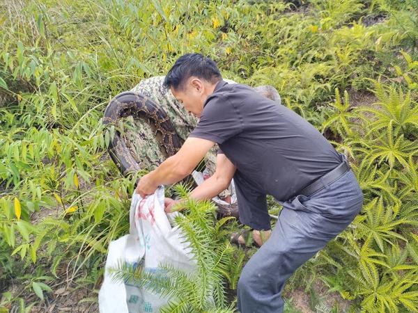 10月20日,武平县象洞镇联坊村一处造林山场内发现一条大型蟒蛇。经当地群众与林业部门协同配合、科学处置,该蟒蛇被成功放归适宜栖息地。
