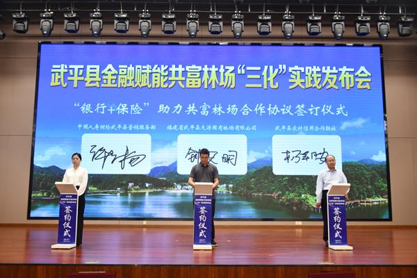 杨超对武平县召开金融赋能共富林场“三化”实践发布会表示祝贺,他指出二十多年前,武平以敢为人先的精神拉开了集体林权制度改革的序幕,实现了“山定权、树定根、人定心”的历史性突破,如今又以共富林场建设为抓手,通过整合分散林业要素、创新合作经营机制、拓展林业多功能经营,有效运用资金杠杆作用,带动了经营者、林农和村集体增收致富。希望武平以党的二十届四中全会精神为指引,继续在林业“提质、兴业、利民”三方面实现新的突破。 黄建兴对武平以金融支持林业改革发展表示肯定,他指出,武平在林业改革道路上始终牢记嘱托、接力奋斗,在探索改革举措、林业产业发展、森林资源保护培育等方面不断开拓新路,值得点赞。希望武平以此次发布会为新起点,在金融赋能林改上持续创新、敢闯敢试、再立新功,为全省乃至全国提供更多林改“武平经验”。 吴良锋对武平在林改中的创新实践给予高度评价,他指出,武平以金融赋能共富林场“三化”实践拓展提升新时代林改“武平经验”,为我省下一步林业改革发展工作提供了新的思路和借鉴。省林业局将全力支持武平林业改革发展工作,并希望相关金融机构在支持林改中不断创新推出更多符合林业特点的金融产品和服务,为林业改革发展提供源源不断的源头活水。 张欣东代表金融系统相关机构表示,金融系统将深入学习贯彻习近平总书记关于金融工作重要论述,立足职责使命,服务绿色发展,引导金融机构推出更多共富林场专项信贷产品,持续推动金融机构根据星级共富林场评定情况定制差异化经营服务,为金融赋能共富林场“三化”实践注入更多动能。 张丽华在发布会上致辞,她说,武平始终把推进林业改革发展作为践行习近平生态文明思想的自觉行动,坚持金融支持林业改革发展的探索实践,实现林改经验从“确权赋能”向“金融赋能”的迭代升级。下一步武平将全面贯彻习近平生态文明思想,持续深化金融与林业深度融合,进一步推动金融赋能共富林场建设,把“三化”实践打造成生态文明建设与共同富裕协同推进的“武平标杆”。 相关部门、金融机构负责人在会上解读了共富林场星级评定及结果应用情况,推介了武平县共富林场“银行+保险”立体式产业链金融服务项目,举行了“银行+保险”助力共富林场合作协议签订仪式,并为星级共富林场及三位共富林场代表进行了授信。会前,与会领导和嘉宾还前往万安镇捷文村、平川街道西厢社区等地,详细察看金融赋能共富林场“三化”实践情况。 据悉,金融赋能共富林场“三化”实践是武平县金融机构立足“全国林改第一县”独特优势,创新推出的“林票三资转化模式”,通过多元确权、多项产品、多重叠加的方式,有效打通“林业资源资产化、林业资产资金化、林业资金杠杆化”的全链条转化通道,让沉睡的山林资源变为流动的资产、活跃的资本,实现“绿水青山就是金山银山”。