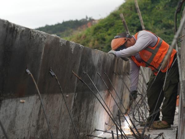 “矿兴路(二期)于今年5月开工,目前已完成土石方开挖5万余立方米,挡墙1200余立方米,2座盖板涵已完成。现阶段正全力进行板墙施工,确保实现年底通车的目标。”项目路基施工负责人江小方介绍。