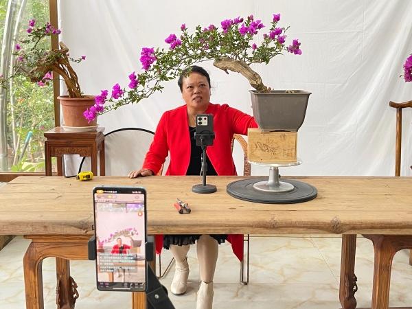顺应线上消费新趋势,赖雪梅大胆尝试网络直播,让三角梅“云上”绽放。“我们主要通过网上直播,还有这附近喜欢三角梅的花友会来这里采购。基地每年仅三角梅一项,就能带来三到五万元的收入。”赖雪梅开心地表示。
