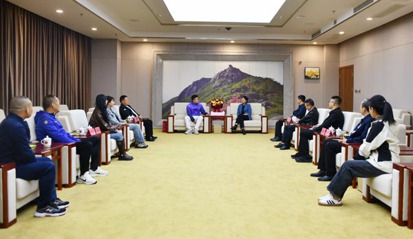 11月18日,武平县委书记张丽华在县继续教育基地会见了第十五届全运会10米气步枪混合团体赛银牌获得者林峰及其家人、教练团队,代表县委、县政府和全县人民向他们表示祝贺和感谢。县委常委、宣传部部长胡阳基参加会见。