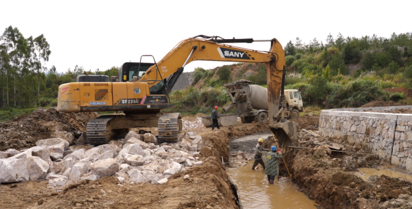 眼下正值农田建设黄金期,武平县岩前镇高标准农田建设(双坊村)项目施工现场一派火热施工景象,施工机械和工人密切配合,正紧张有序地进行护岸修筑与水渠建设。