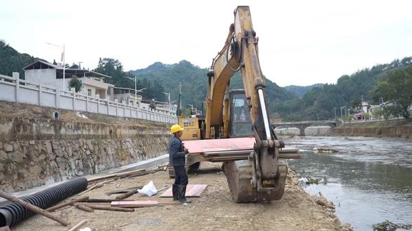 11月18日,在武平县中赤镇农村生活污水提升治理工程项目施工现场,施工机械轰鸣作业,工人们各司其职,有条不紊地推进河道污水主管道浇筑作业。