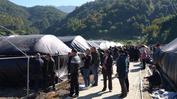 11月21日,武平县农业农村局香菇栽培新技术现场观摩培训会在十方镇叶坑村稻菌轮作和香菇新品种示范基地举行。香菇种植大户、家庭农场、专业合作社代表齐聚一堂,共同观摩学习新品种、新技术,共谋产业发展。 本次重点推广的香菇新品种“农香17”及“稻菌轮作”生态模式,成为全场焦点。“农香17”是国家授权的植物新品种,具有耐高温、出菇温差要求小、菌柄短、朵形规整及产量高等突出优点,市场前景广阔。目前,武平县在东留镇、十方镇建立“农香17”新品种试验示范基地4个。 在十方镇稻菌轮作示范基地,参会人员深入大棚,实地查看了“农香17”的长势。县农业农村局推广研究员钟礼义现场讲解了“集中制包—培养—出菇—废棒还田—再种水稻”的绿色循环全流程。 “我目前种植了香菇6万袋,今天参观学习稻菌轮作新技术,很受启发。回去后打算扩大规模,争取增产增效。”香菇种植户钟强远在观摩后表示受益匪浅。