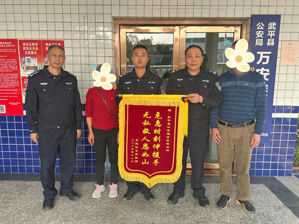 12月3日上午,一面印有“危机时刻伸援手,无私救人恩如山”字样的锦旗送到了武平县公安局万安派出所。送锦旗的群众紧紧握着民警的手,表达一家人的感激之情,“多亏你们及时出动、全力搜寻,老人才能平安回来!”
