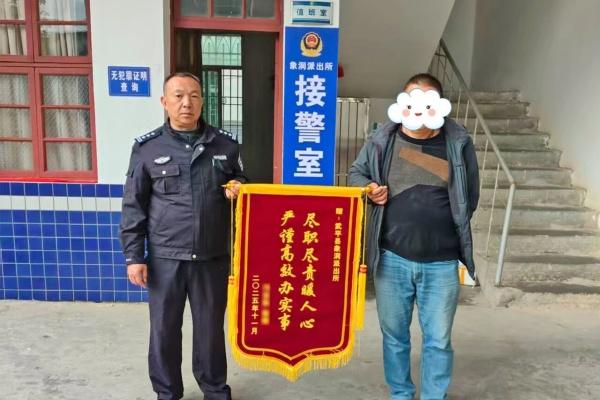近日,邝先生来到象洞派出所,将一面印有“尽职尽责暖人心 严谨高效办实事”字样的锦旗送到民警手中,感谢帮其找回丢失钱包。 原来,热心群众将捡拾的钱包交到派出所,钱包内有现金和证件。民警经排查,找到了失主邝先生并将钱包归还。 拦截被骗钱款