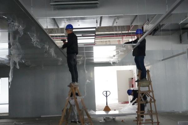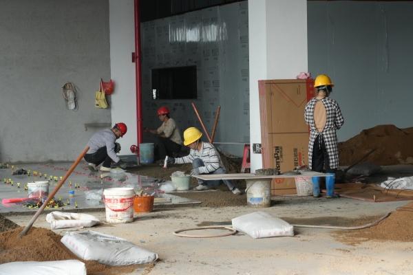 12月12日,在武平高新区深金新(福建)光电有限公司项目施工现场,工人们正紧张有序地进行地面铺装和吊顶安装作业,全力冲刺2026年1月的试产目标。