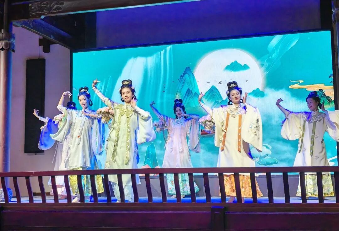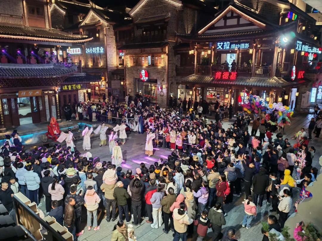 街区内处处是景,步步有戏。古风仕女、书生与游客同行巡游,乐师现场弹奏古筝、二胡雅韵,巡游队伍起舞、轿夫展风采、闺蜜团献舞等精彩片段轮番上演,让游客仿佛穿越千年。汉服大赏尽显传统服饰之美,现代舞串烧注入青春活力,县太爷鸣锣启招亲、花轿巡街的热闹场面引得市民游客纷纷驻足拍照,掌声与欢呼声此起彼伏。