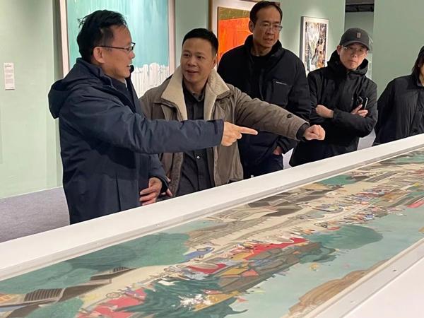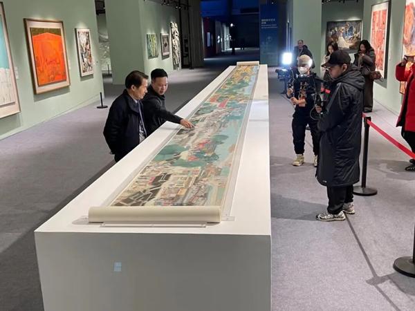 展览汇聚了全球近120个国家和地区的近600件(组)作品,其中一幅长40米的《龙舞京华图》画作一经展出便聚集大众目光,赢得各界高度关注。这幅长卷聚焦7.8公里的北京中轴线,将沿线的人文风貌与自然景致融于笔墨之间。据悉,该作品由王福生、王慧晓、赵凯、张效仿、梁桂锋共同创作。