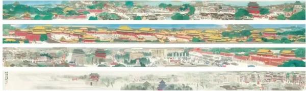 作品中,故宫场景占据13米篇幅,堪称全画的“体量担当”,细节考究至极:屋顶上的角兽如一龙二凤、三狮子、天马、狎鱼等,均严格遵循古制规格精准呈现,一笔一画尽显对传统文化的敬畏与匠心。《龙舞京华》以40米长度串联历史与当下,用细致笔触让北京中轴线魅力跨越时空。当这幅巨作在各大平台持续传播,人们不仅看到画作的惊艳,更感受到传统文化在当代艺术中的鲜活生命力。