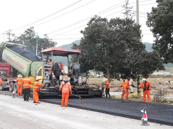 1月5日,在国道357线武平县十方镇彭寨村至集贤村路面改造工程现场,沥青投料车、摊铺机、压路机等多台设备正在紧张作业,施工人员有序进行各道工序,项目推进顺利。
