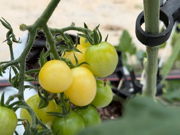 “今年共种植10个品种,新增白色和黑色小番茄,其中‘白妃’和‘金童’为主要品种。”基地负责人林胜平介绍,“基地采用无土栽培技术,通过水肥一体化系统精准调控养分,既减少土壤病害,又提高肥料利用率,果实品质与种植效率显著提升。”