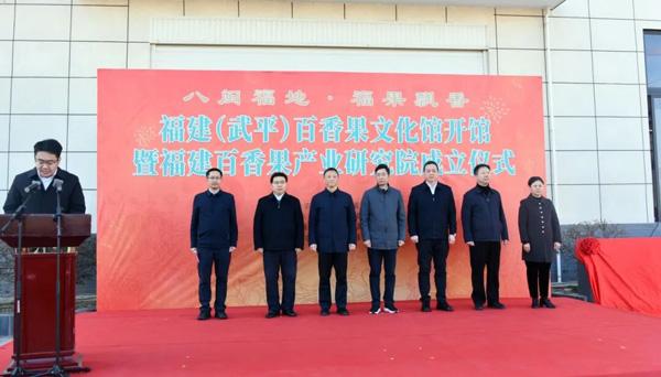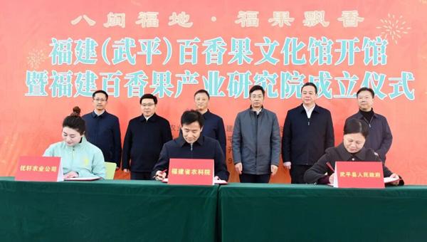 王建华在致辞中指出,武平百香果产业是我省特色农业转型与乡村振兴的典范,已发展为全产业链超15亿元的主导产业。省农业农村厅将持续支持其在政策、项目、品牌及市场拓展方面的发展。王建华提出三点希望,一是文化赋能,以百香果文化馆为平台,持续深化农旅融合和百香果文化传播,助力产业从“卖产品”向“卖文化”升级。二是科技创新,推动福建百香果产业研究院聚焦品种选育、精深加工等关键技术攻关,为产业注入科技动能。三是龙头带动,培优做强龙头企业,健全联农带农机制,让农民共享发展成果。 余文权在致辞中指出,福建百香果农业产业研究院是响应国家战略、顺应产业发展趋势的新型研发机构。研究院将以企业技术需求为导向,重点围绕百香果栽培、精深加工及副产物综合利用开展联合攻关,着力破解“一产”向“二产”融合的瓶颈制约,共同推动产业高质量发展。他期待研究院能充分发挥各方科研与产业优势,深化技术创新与融合应用,建设集技术研发、成果转化、企业孵化和人才培养于一体的协同创新平台,为探索农业绿色高质量发展新路径、服务乡村振兴贡献力量。 李小飞代表县委、县政府向长期以来关心、支持武平发展的领导、专家和社会各界人士致以衷心的感谢。他希望上级部门、研究院所持续在政策扶持、项目布局、技术攻关、品牌打造等方面给予更大力度的支持。同时他表示,武平将以此为契机,持续拓展延伸百香果产业链条,创新优化百香果种植技术,做大做强百香果品牌效益,为促进福建百香果产业竞争力提升作出武平更大的贡献。