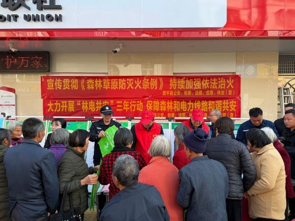 1月14日,正值武平县中堡镇传统圩日,一场别开生面的《森林草原防灭火条例》暨“林电共安”主题宣传活动正在街头人流密集处火热举行。