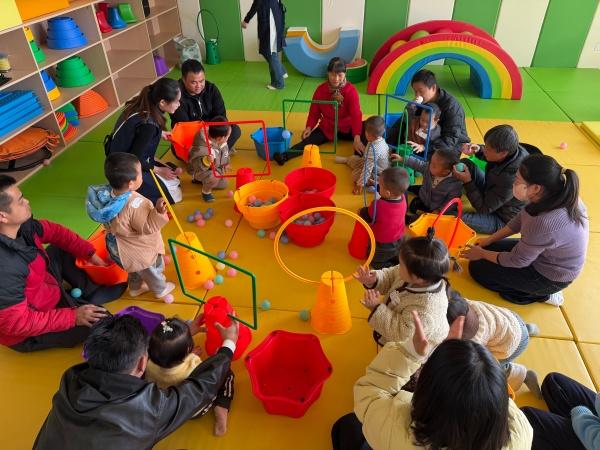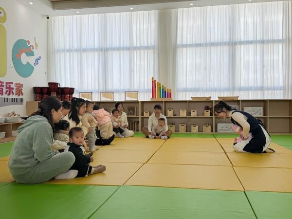 1月15日,记者在托育中心看到,多名婴幼儿在家长陪同下围坐成半圆,在育婴师轻柔引导下拍手、做自我介绍、玩互动游戏,沉浸式体验趣味早教课程,现场欢声笑语。