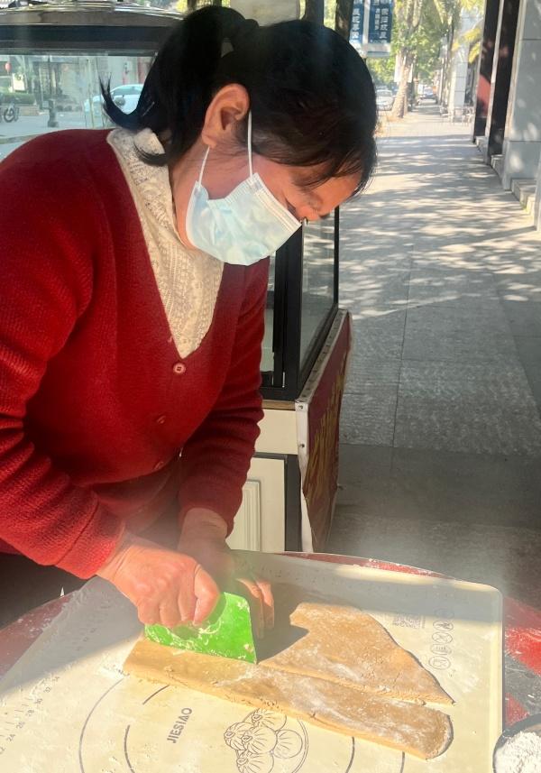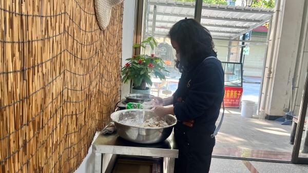 1月16日,记者在岩前镇一处临街小店看到,店主曾丽华正忙着将熟糯米粉与面团反复揉搓、拌匀,动作娴熟。