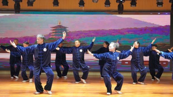 节目精彩纷呈,涵盖舞蹈、太极、器乐、瑜伽、合唱等艺术门类。舞蹈班学员表演了《珊瑚颂》《天南地北唱中华》《华尔兹》等舞蹈,舞姿优美,情感真挚;太极班学员带来的《42式健身太极拳》《健身气功:大舞》,动作刚柔并济,展现传统养生文化的魅力;器乐社演奏的《南湖红船》旋律悠扬,非洲鼓班《喜乐年华》节奏明快;瑜伽表演《别怕我伤心》则以静谧舒展的姿态,呈现身心和谐的境界;声乐班学员则以一曲气势恢宏的《我的祖国》大合唱将演出推向高潮。