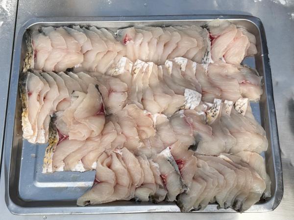 制作伊始,需精选鲜活草鱼,只取肉质最厚实鲜嫩的中段,均匀切片备用。随后是关键一步——裹粉,将切好的鱼片均匀裹上蕉芋粉或优质淀粉,这不仅能锁住鱼肉的水分和鲜味,还能增强鱼片的韧性,使其在捶打过程中不易碎裂。随后,用小木槌对着裹好粉的鱼片反复捶打,捶打的力度要均匀适中,既要将鱼肉捶散捶透,又不能破坏其纤维结构。经过一番细致而专注的捶打,鱼片最终延展成薄如蝉翼、形似蝴蝶的鱼饼。