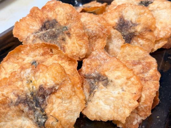 炸制环节同样讲究,油温需恰到好处,过高易焦,过低则吸油。待鱼饼炸至通体金黄、表面微鼓时捞出控油。刚出锅的捶鱼散发着浓郁酥香,折一块放入口中,满口酥脆,“咔嚓”声伴随着丰富口感,让人回味无穷。