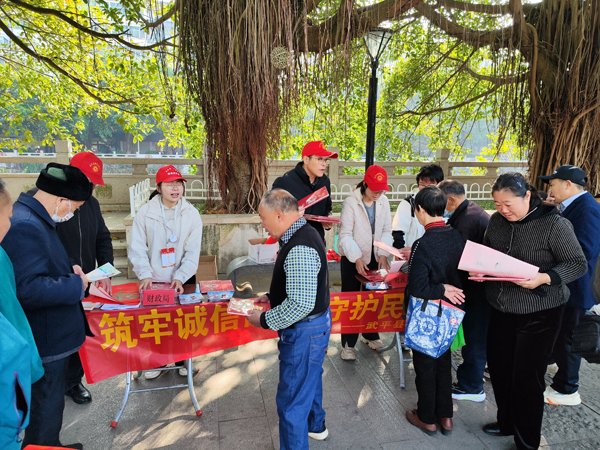 活动现场,“筑牢诚信防线,守护民生资金”的主题横幅格外醒目。财政局工作人员及志愿者通过设立政策咨询台、发放宣传资料、开展互动问答等多种形式,向群众讲解财政信用的重要性、相关政策法规以及维护自身信用的途径。 志愿者们热情地向过往群众发放精心制作的宣传单页、知识手册,以及结合新春佳节氛围的“福”字等实用宣传品,吸引了众多市民驻足参与。特别设置的“诚信知识小问答”互动环节,以寓教于乐的方式激发了群众的参与热情,现场气氛活跃。群众积极参与互动,认真阅读资料,并就关心的财政政策、资金监管、个人信用记录等问题与工作人员进行频繁交流和咨询。