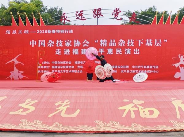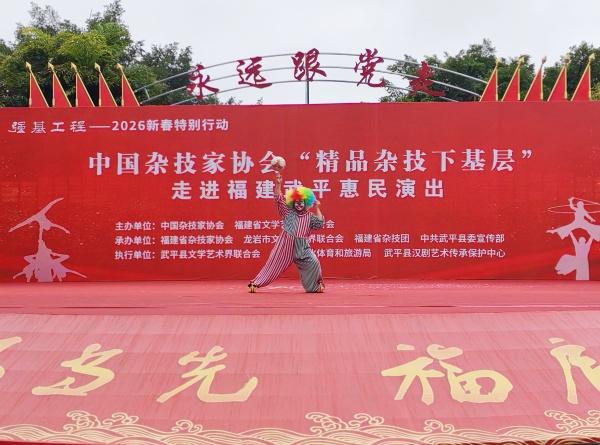 新春将至,福韵绵长。1月30日上午,由中国杂技家协会与福建省文学艺术界联合会联合主办的“精品杂技下基层”惠民演出在武平县新时代文明实践梁野文化广场浓情开演,为当地群众带来了一场精彩纷呈的新春文化盛宴。福建省文联党组成员许瑞生、武平县委常委李天龙及省、市、县相关部门领导与上千名观众一同观看演出。