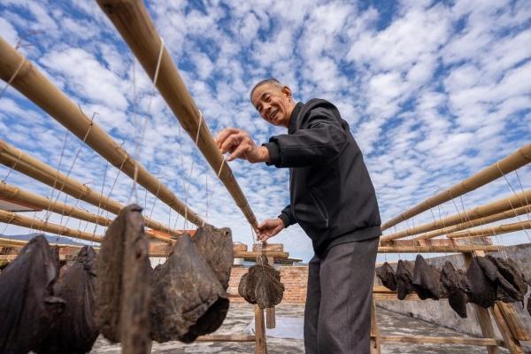 与许多食品加工不同,武平猪胆肝的制作严格遵循自然节律。“每年只有立冬到大寒这期间,干燥的北风起来了,才是制作的时候。这是老祖宗传下来的规矩,急不得,也乱不得。”武平猪胆肝制作技艺县级传承人谢松青一边翻动着缸中食材,一边向记者解释。
