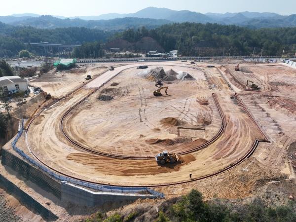 在运动场施工点,铲车、挖掘机往来作业,工人们正在铺设环跑道水沟。 “运动场于2025年12月初开始施工,总建筑面积3万多平方米,目前正在施工的是跑道环形水沟,接下来将进行环形跑道的灰土施工、透水水泥层铺设以及塑胶跑道施工。”运动场子项目现场负责人郭红芬介绍。