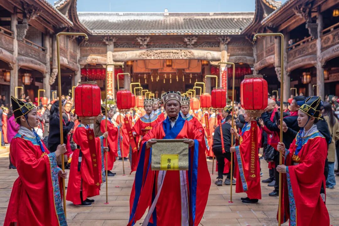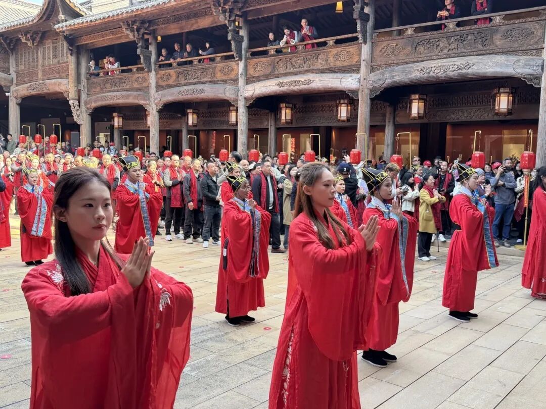 上午10时18分,祈福大典在阵阵鼓声中拉开帷幕。击鼓传福、耕春种福、掌灯祈愿、诵读祈文等环节依古制有序进行。参与者依传统礼仪,有序参与祈福,寄托对新岁的美好期许,现场处处洋溢着辞旧迎新、纳福祈祥的节日气息。