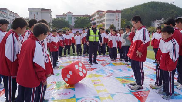活动设置了丰富多样的互动、体验及科普环节,氛围感十足。交通安全、金融安全、反诈、消防四大板块有奖竞答轮番开展,学生踊跃举手、积极抢答,在轻松愉悦的氛围中学习安全知识。交通安全飞行棋大作战、货车盲区体验等沉浸式活动,让学生们直观感受到日常生活中可能存在的安全隐患。此外,现场还专门设置了警用装备展示区、消防器材科普区及金融安全知识宣传区,工作人员通过现场演示,手把手指导学生正确使用消防器材、识别常见诈骗手法,有效提升了大家在紧急情况下的自救与互救能力。
