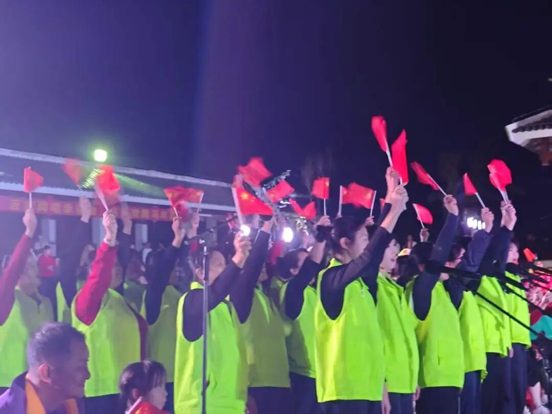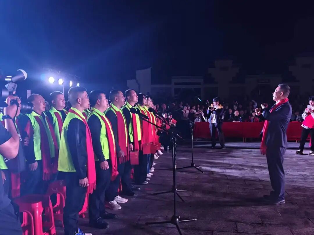 整场晚会以红色经典歌曲为主线,穿插非遗展示与特色舞蹈,节目形式丰富多样。《红星照我去战斗》《歌唱祖国》《我和我的祖国》等一首首耳熟能详的歌曲轮番唱响,各支拉歌队伍精神饱满、歌声嘹亮,现场掌声与欢呼声此起彼伏。非遗展示闽西汉剧《贵妃醉酒》韵味悠长,舞蹈《绣红旗》深情动人,歌舞《乘风破浪》活力四射,生动展现了古镇群众昂扬向上的精神风貌。