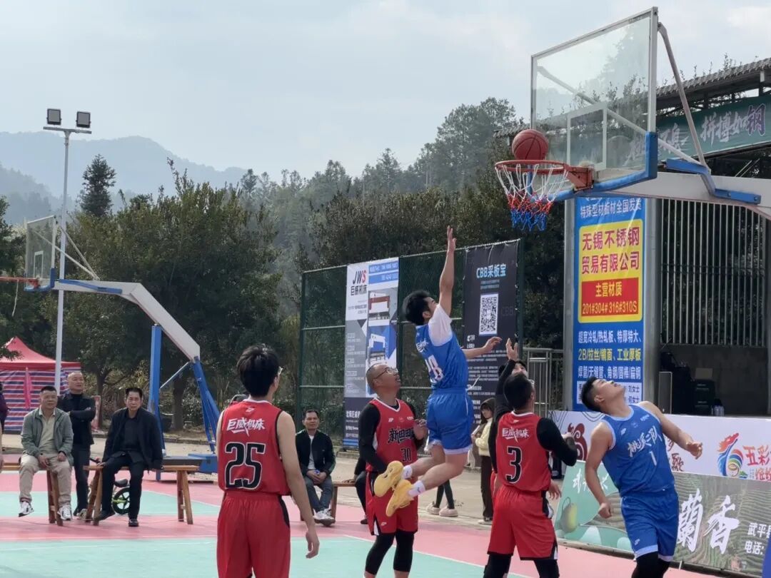 赛场上,球员们传球、突破、投篮,攻防转换紧凑激烈,每一次精彩进球都引来观众阵阵欢呼。场边村民与返乡游子齐聚,掌声、呐喊声此起彼伏,年味与运动激情相融。