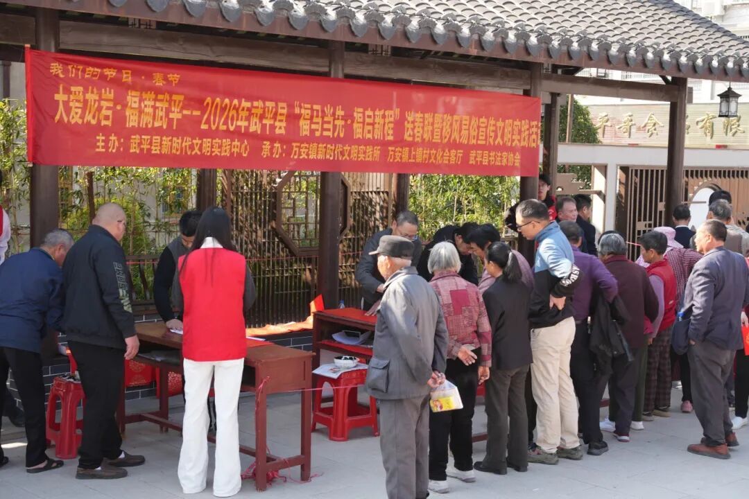新春佳节,浓浓年味。武平县以乡村文化会客厅为主阵地,推出义务写春联、拉歌、篮球赛、民俗展演等系列惠民活动,让年味更浓、文化更足、群众更乐。 万安镇 春节前夕,一场充满墨香与温情的送春联公益活动在万安镇上镇村文化会客厅热闹启幕,县书法家协会的书法家们与本地书法爱好者齐聚一堂,以笔为媒、以联为礼,将最真挚的新春祝福送到群众手中,同时传递文明新风尚。