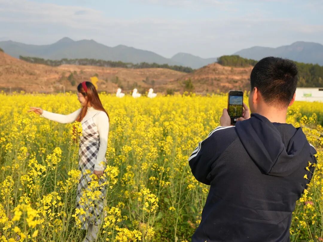 采摘园负责人谢亮文介绍,“这几天油菜花开得正艳,依托油菜花景观带动人气,来体验采摘的游客也多了很多,促进了农产品销售,带来了不小收益。”