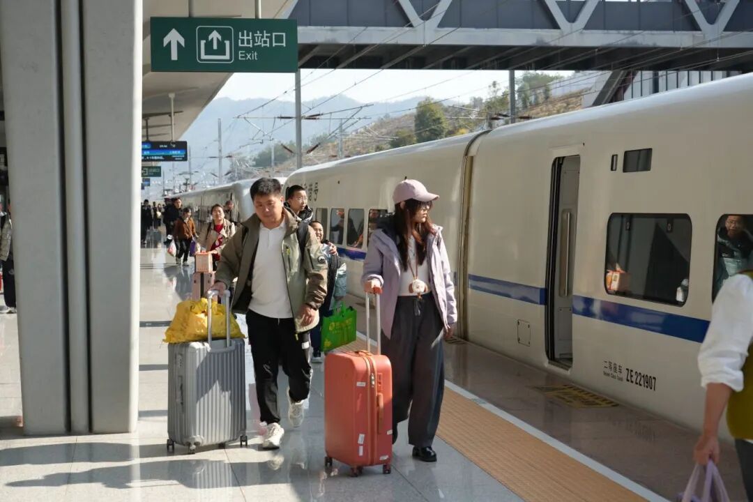 返程旅客罗先生说:“我在浙江宁波工作。春节回来跟家人团聚,大家都很开心,因为一年也就这么一次团聚。现在春节结束了,准备回去上班,坐高铁出去很方便。”