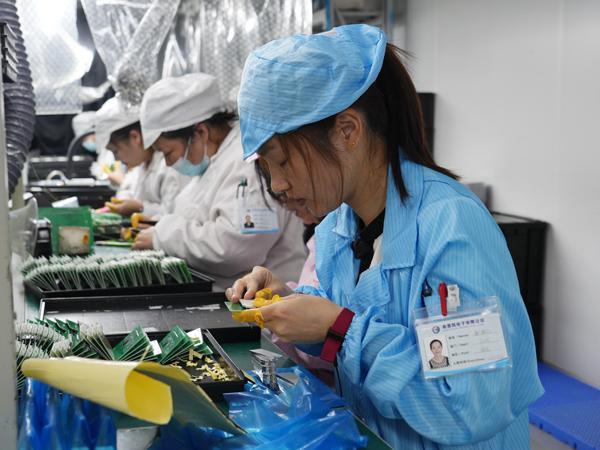 这家扎根武平的龙头企业,产品已成功拓展至全球80多个国家和地区。2025年,伊普思出口额达5500万元,同比激增99%,实现跨越式增长。随着海外市场的持续发力,2026年出口额有望突破亿元大关。 同样的繁忙场景,也在福建希恩凯电子有限公司上演。TFT车间内,12条彩屏全自动绑定线与8条HMI生产线开足马力、满负荷运转。工人们在各自岗位上娴熟操作,全力赶制发往全国乃至世界各地的订单。