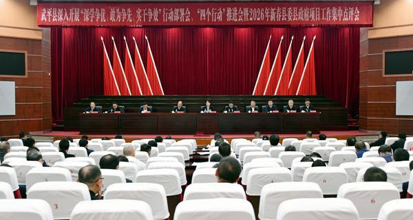 2月27日,武平县深入开展“深学争优、敢为争先、实干争效”行动部署会、“四个行动”推进会暨2026年新春县委县政府项目工作集中点评会召开。会议深入贯彻落实中央、省委、市委经济工作会议和省委“三争”行动总结部署会、市委深入开展“三争”行动暨工业经济提质增量行动动员部署会的要求,总结2025年全县经济工作,部署2026年深入开展“三争”行动和经济工作,并就推进“四个行动”进行再动员再部署,进一步形成比学赶超、奋勇争先的浓厚氛围,为全年各项工作提质增效开好局、起好步。市政协副主席、县委书记张丽华主持会议并讲话。李小飞、钟日朝等县四套班子领导参加。
