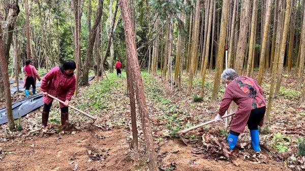 林场还建立了稳定的联农带富机制,17户林农林地实现流转获得稳定租金,闲置林地变“生资产”,合计年收益1.1万元。同时吸纳农户(含脱贫户)以入股或参与务工取得收益,通过“整、合、种、造、销”五字诀,推动林下经济规模化、产业化发展,实现多方共富增收,多重收益成果同享。