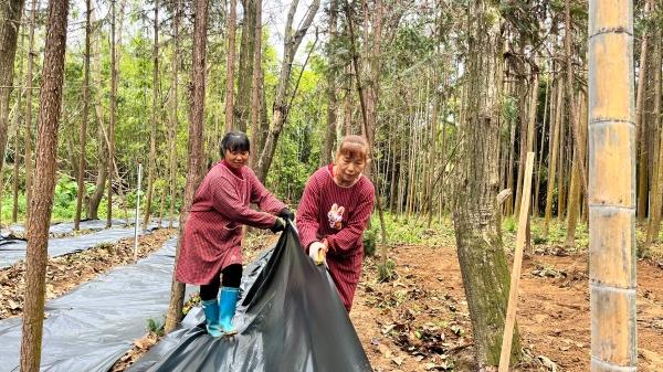 阳春三月,万物竞发。在武平县中山镇阳民共富林场,成片的金毛狗蕨、片仔癀等中药材嫩苗在林荫下舒展绿意,工人们正忙着覆盖地膜,为种植新一批中药材做准备,林地间勃勃生机尽显。