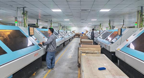 在同一园区内的国家级专精特新“小巨人”企业--龙岩金时裕电子有限公司车间内,智能设备高速运转,工人们熟练操作设备,赶制一批批高精度电路板订单,现场一派繁忙的生产场景。