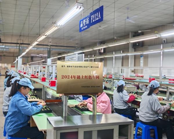 走进福隆电子(龙岩)有限公司的生产车间,机器轰鸣,F212A组的工人正在各自工位上娴熟地操作设备,从元器件加工到成品检测,各环节高效衔接、井然有序。这支仅有40余人的团队,凭借精湛技艺与高效响应,扛起了公司年产值15%的重担,并于2025年4月被县委、县政府评为2024年“链上红色车间”。 “获评‘红色车间’,对我们来说既是荣誉,更是动力。班组上下现在拧成了一股绳。”该公司党支部书记刘科星感慨道。