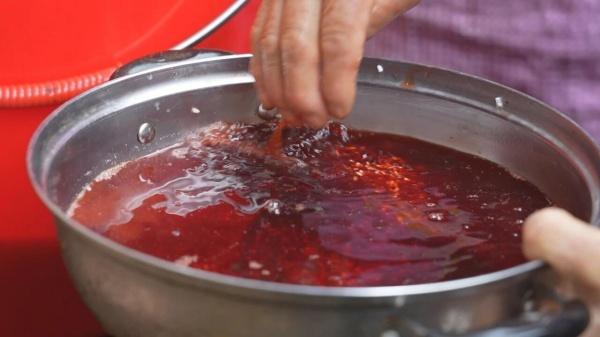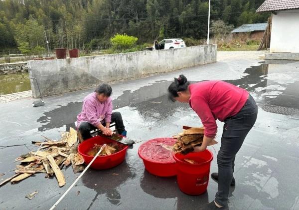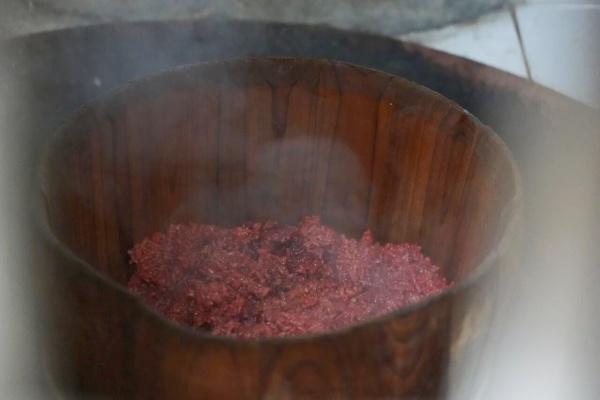 村民们先上山砍新鲜的红毛勾树皮,洗净后入锅小火熬煮,熬出浓郁醇厚的红汤;再将红汤缓缓倒入淘洗好的米中,充分浸润拌匀,最后入锅蒸制。灶火升腾、香气弥漫,大家烹红饭、备酒菜、喜迎宾客,现场热闹温馨,乡情浓厚。