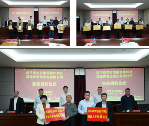 会议听取并审议通过了第三届理事会第四次会议《工作报告》《财务报告》《监事会报告》,表扬了慈善工作先进单位和个人。会议还举行爱心捐赠仪式,福建伊普思实业有限公司、武平县农村信用合作联社等两家企业分别捐赠50万元及5万元支持武平慈善事业。